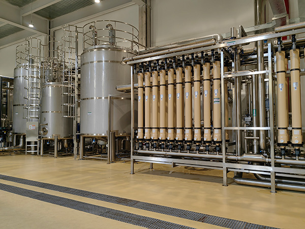 PASS至2009年二期項(xiàng)目開始,陸續(xù)為其配套(600m3/h)釀造、包裝水處理系統(tǒng)。水處理系統(tǒng)采用世界上最先進(jìn)的膜處理工藝,全自動(dòng)控制系統(tǒng),確保系統(tǒng)運(yùn)行的安全、高效、健康、環(huán)保,最大程度的降低酒廠的水耗及能源消耗。